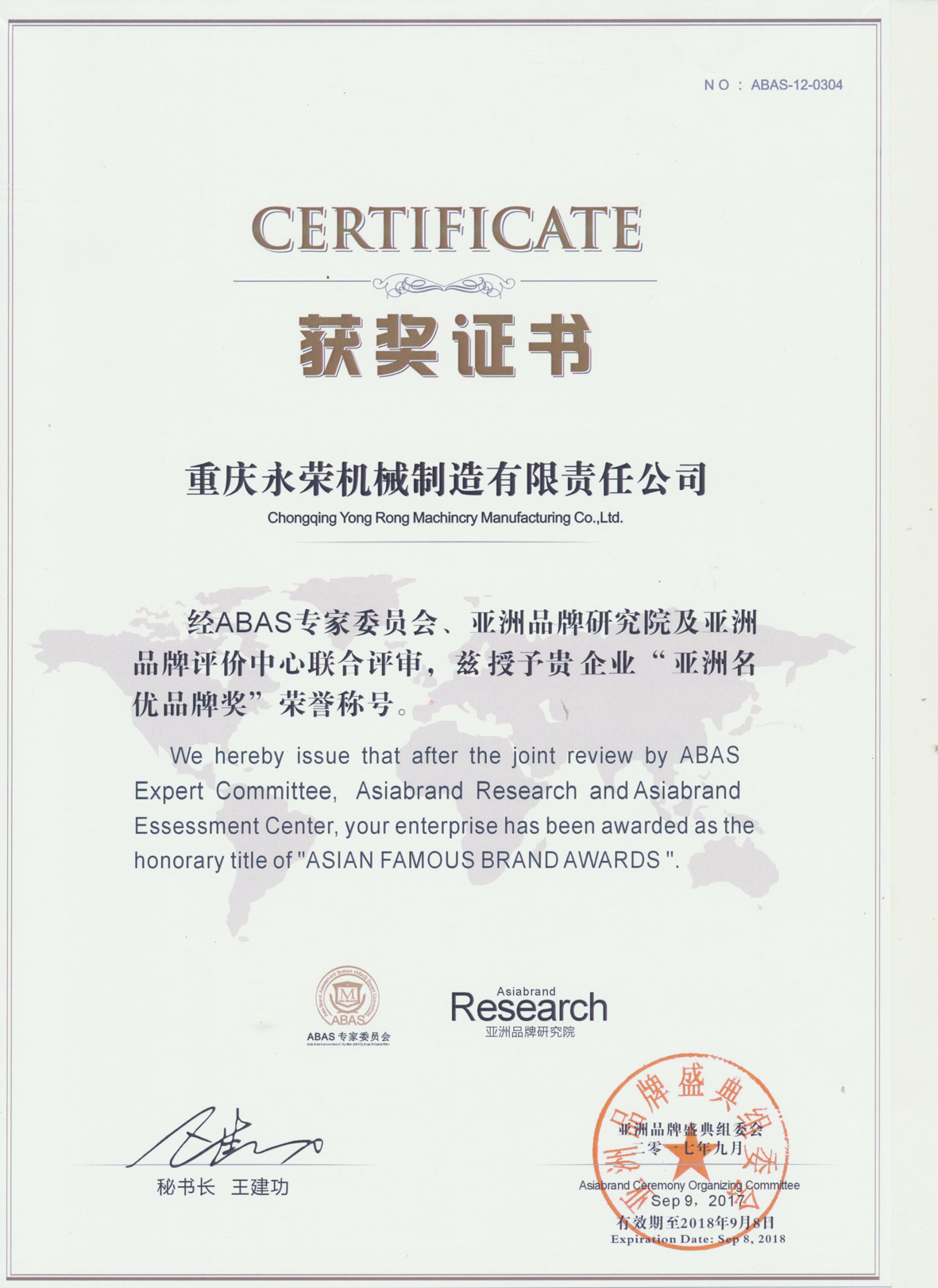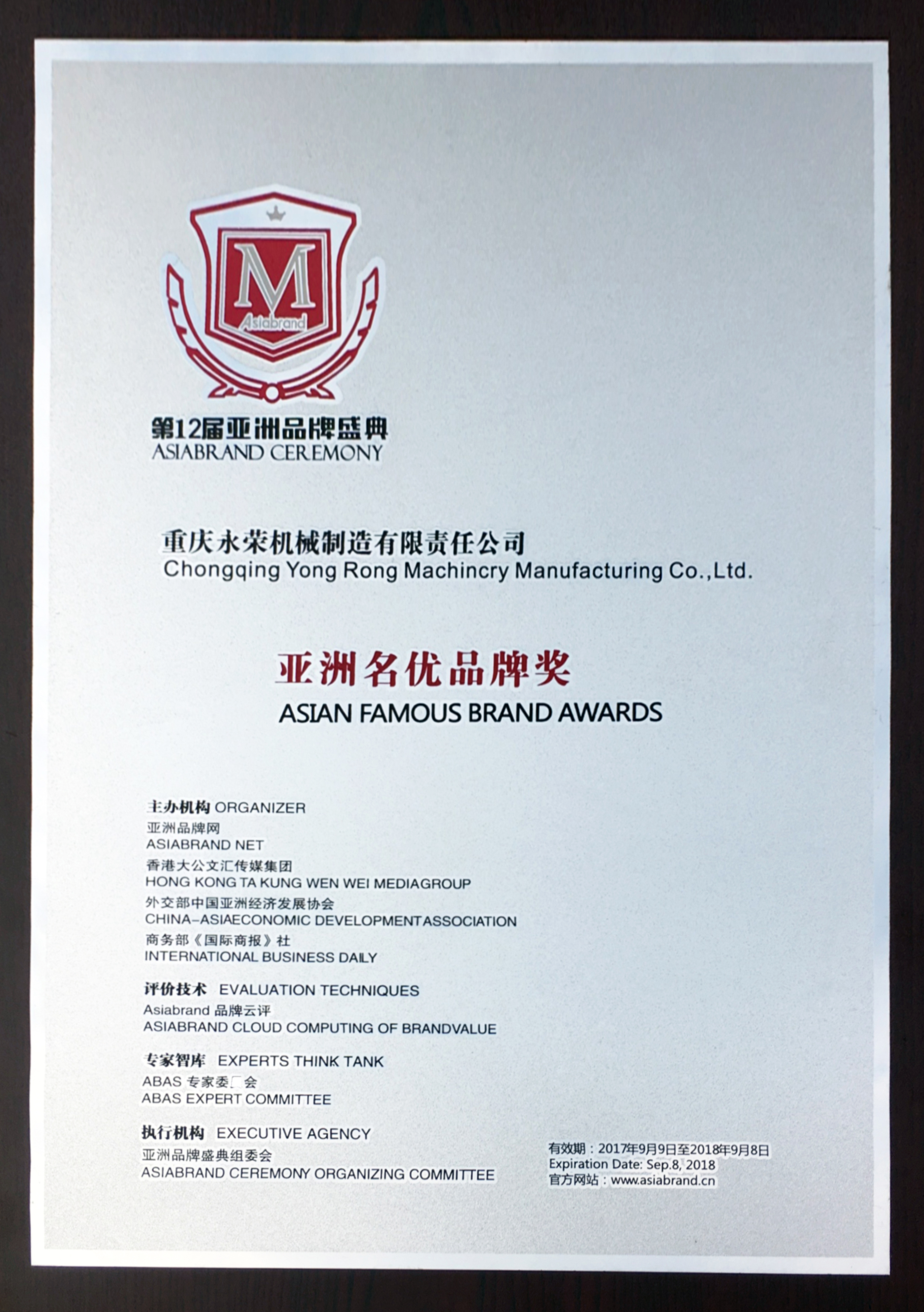 亞洲名優(yōu)品牌獎(jiǎng)