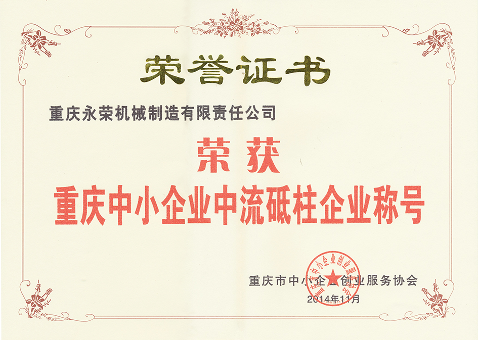 重慶中小企業(yè)中流砥柱企業(yè)稱號(hào)