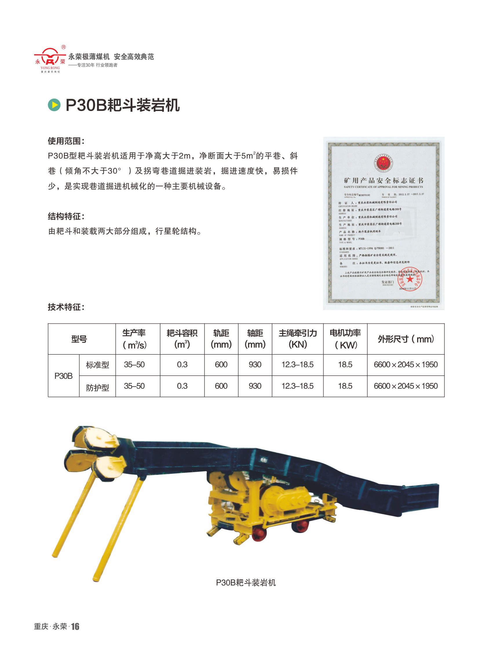 適用于凈高大于2m,凈斷面5m2以上的平巷、斜巷(傾角不大于30°)及拐彎巷道掘進(jìn)裝巖,掘進(jìn)速度快,易損件少,是實(shí)現(xiàn)巷道掘進(jìn)機(jī)械化的一種主要機(jī)械設(shè)備。
