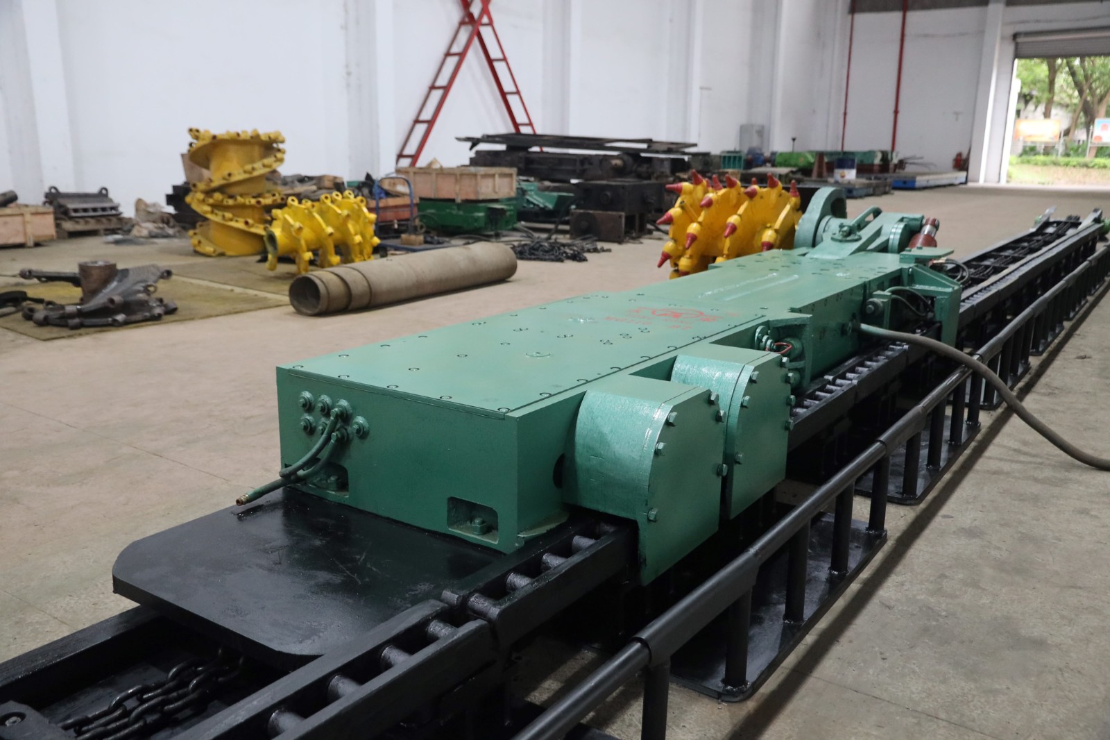 使用范圍 該型采煤機(jī)適用于采高0.8-1.7m,傾角小于30°,煤質(zhì)硬度小于3.5,含有少量夾矸的長(zhǎng)壁式工作面。該機(jī)采用無(wú)級(jí)變速液壓牽引,銷(xiāo)軌行走,整機(jī)原裝進(jìn)口液壓元件,技術(shù)成熟可靠,運(yùn)行平穩(wěn),無(wú)故障運(yùn)行同行領(lǐng)先,日常維護(hù)成本低。與刮板輸送機(jī)、單體液壓支柱和金屬頂梁配套使用,組成高檔普采工作面,初期投入少,見(jiàn)效快。還可采用無(wú)線(xiàn)遙控操作,降低工人勞動(dòng)強(qiáng)度,提高開(kāi)采效率。